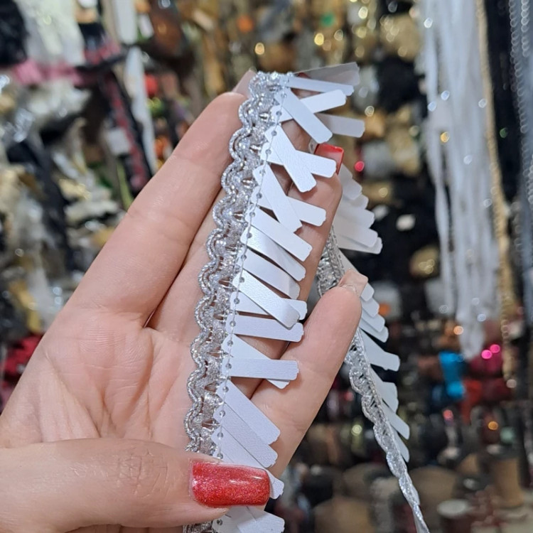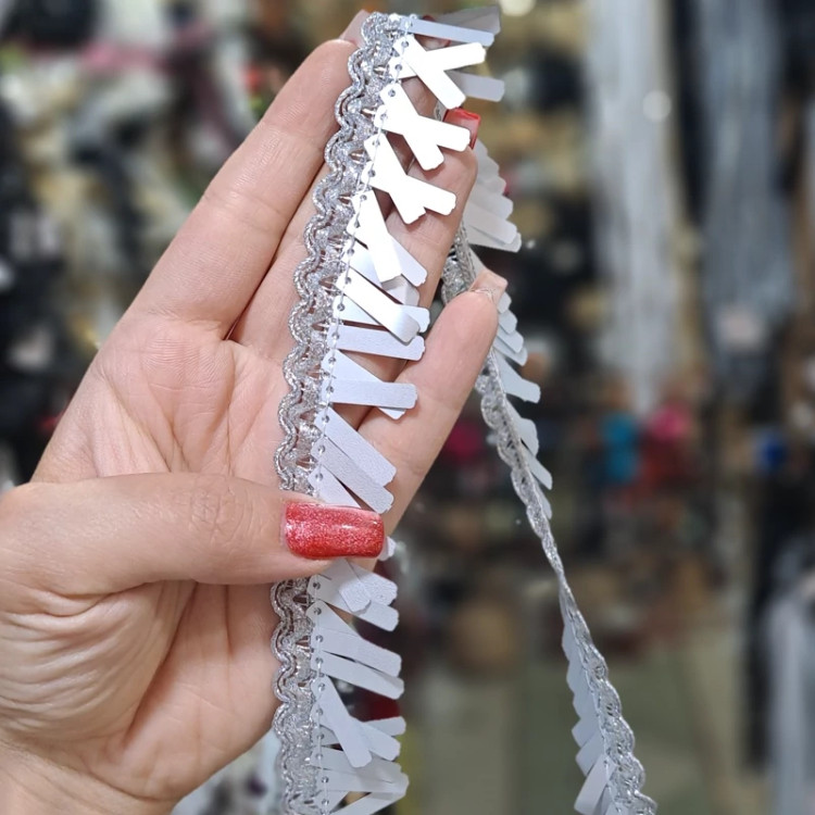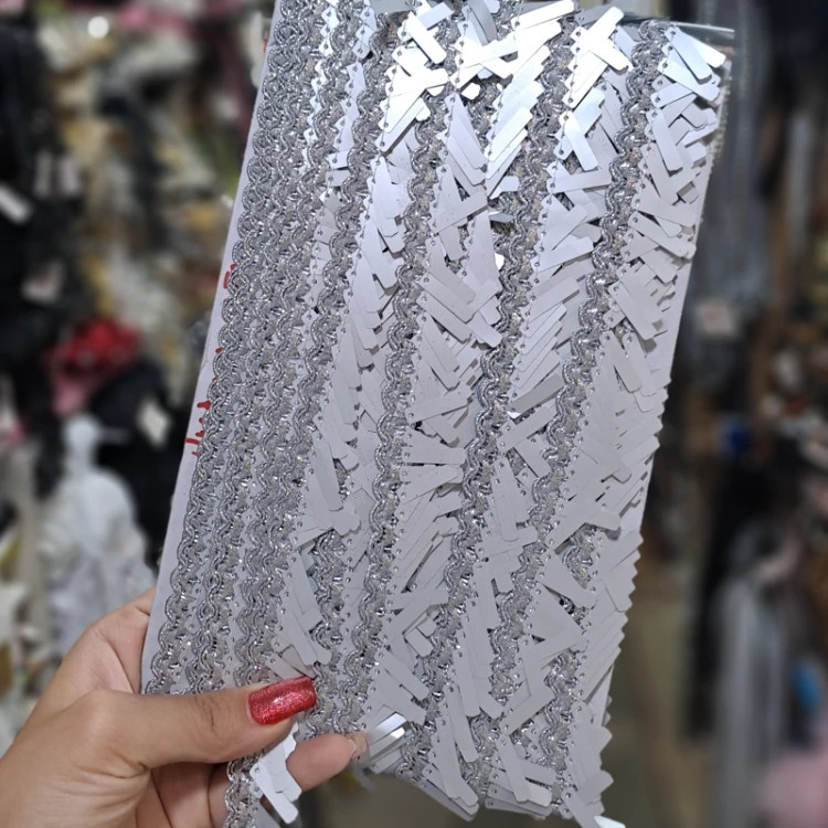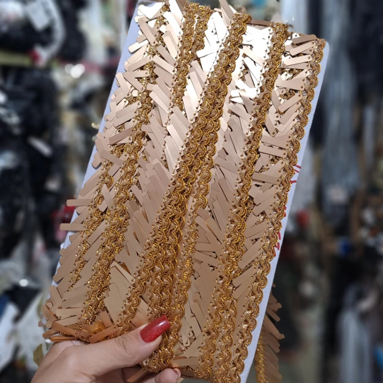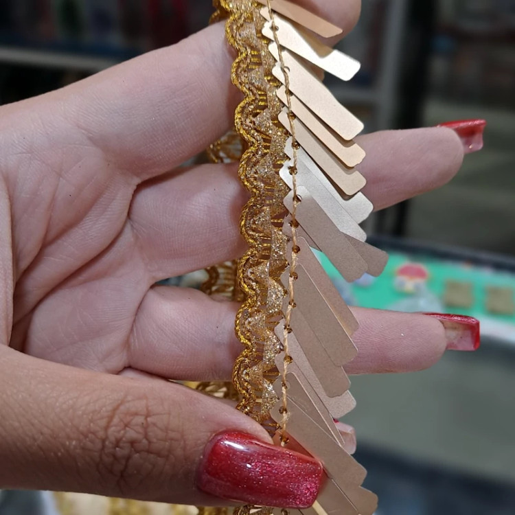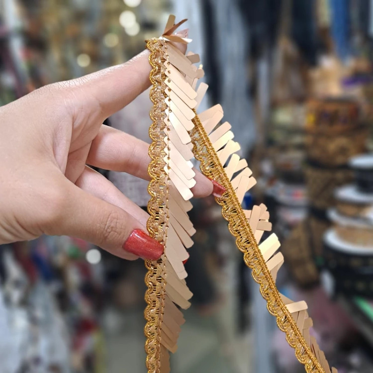 دیدن محصولات مرتبطمشخصات👇👇👇👇👇 یراق با پولک های مستطیلی با عرض 2 سانتی طلایی و نقره ایی مناسب تزئین انواع لباس ،مانتو ،کوسن ،رومیزی ،صندل ،کیف و..... قیمت هر متر 60 هزار تومن