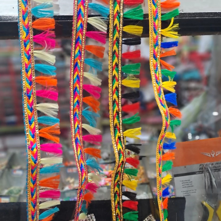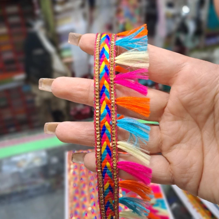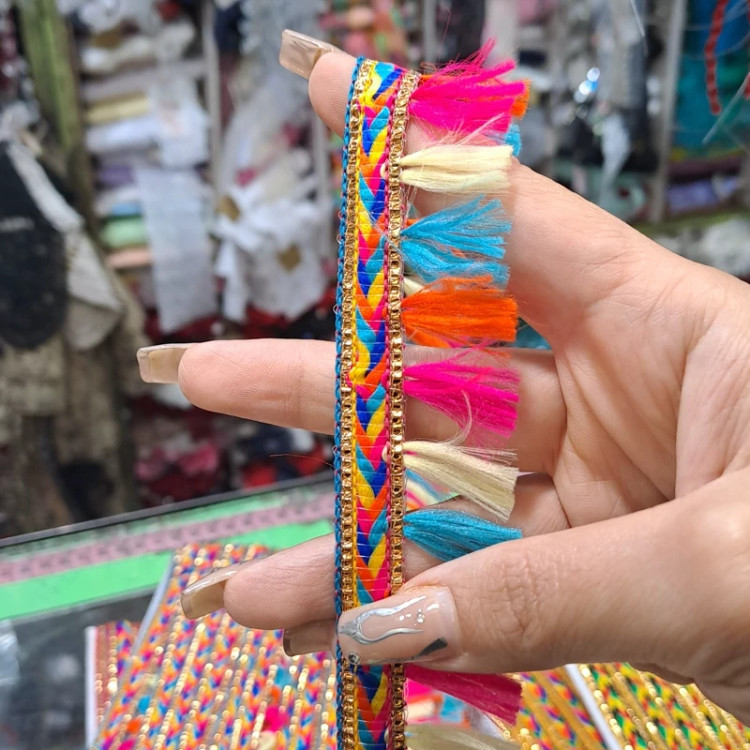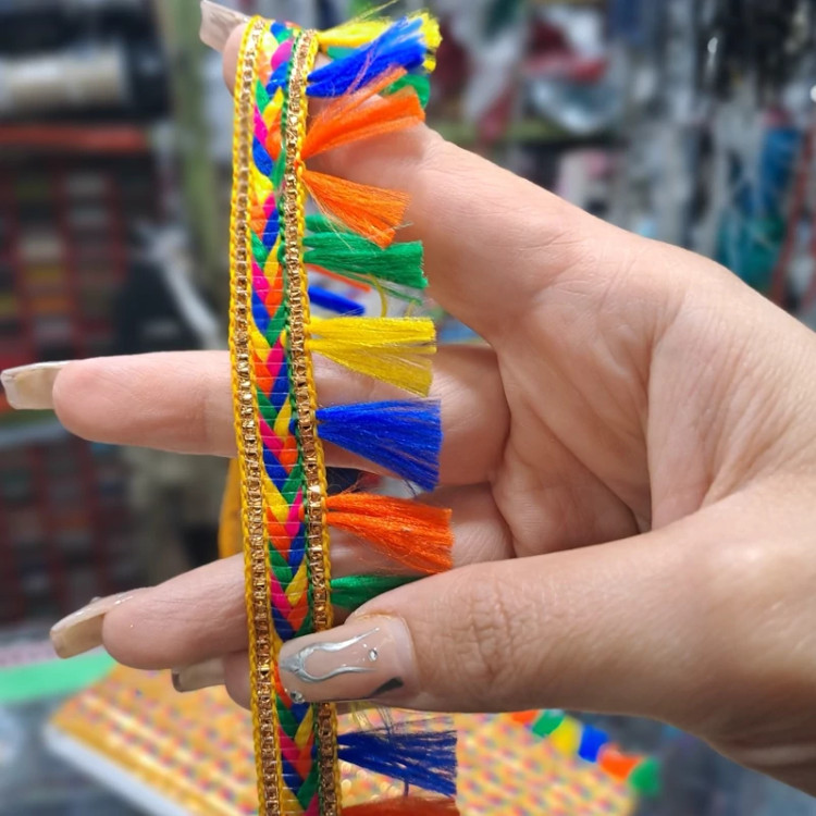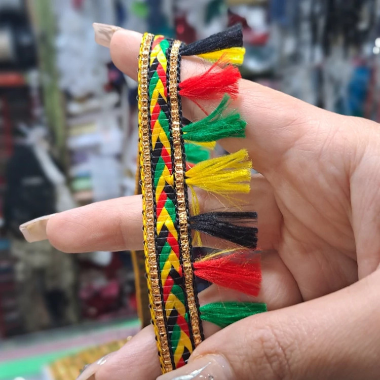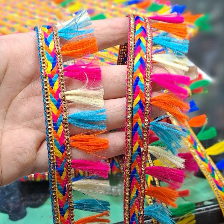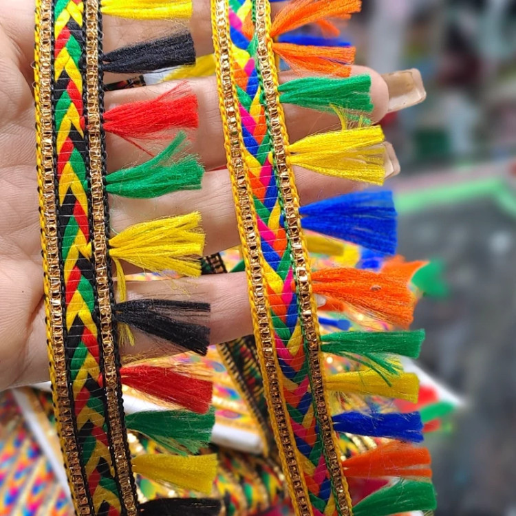 یراق منگوله دار در رنگ های مختلف عرض 3 سانت مناسب انواع لباس ها و مانتو ها سنتی و صندل و دمپایی فروش بصورت متری