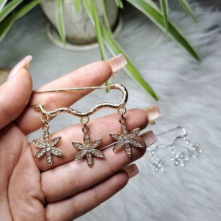 گلسینه یا سنجاق لباس طرح گل اویزادار