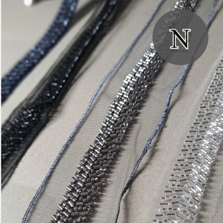 دیدن محصولات مرتبطیراق مجلسی باریک در رنگ های نقره ایی - مشکی - سرمه ایی - سربی عرض 2 سانت فقط از منجوق و ملیله است مناسب تمامیه لباس های مجلسی - کت - مانتو - پیراهن - شومیز - چادر - شلوار .... قیمت هر یک متر 200 هزار تومن است