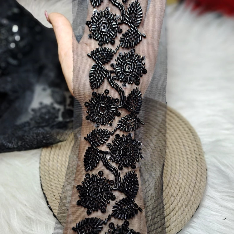 مشخصات 👇👇👇👇 ✨✨✨✨✨✨✨✨✨✨ یراق فول مجلسی مشکی تزیین شده با منجوق و ملیله شکسته روی تور قابل برش از هرجا که خواستید بدون ریزش مناسب تزیین انواع لباس و پیراهن - مانتو -کت -کفتان-چادر و.... قیمت هر متر 250 هزار تومن