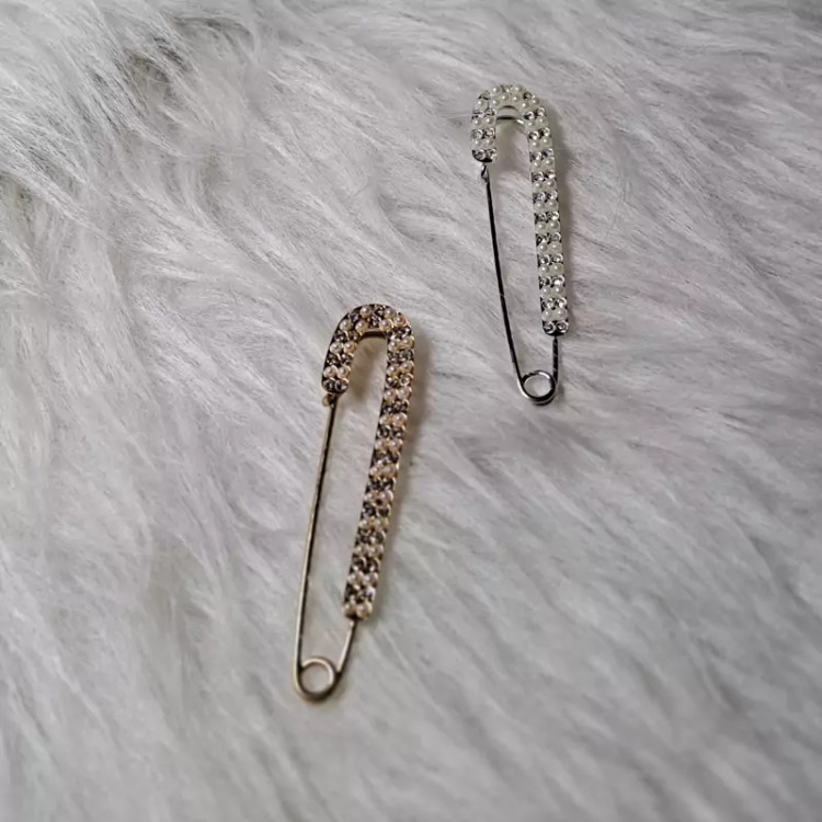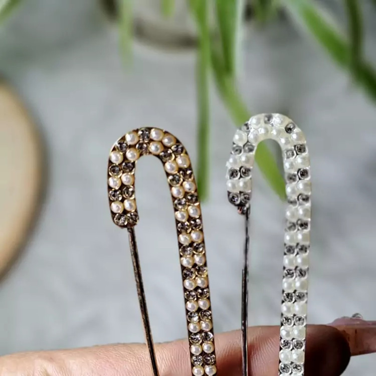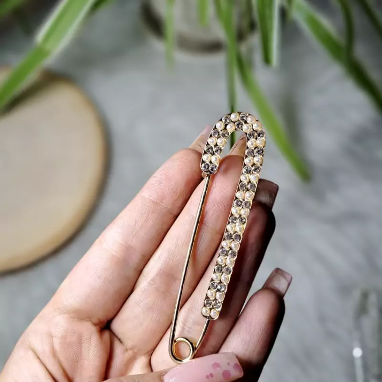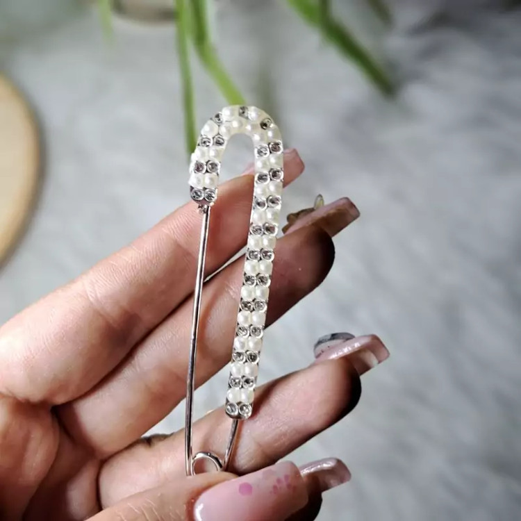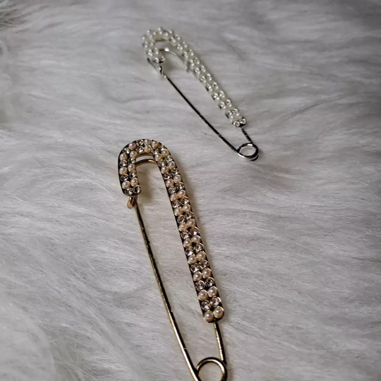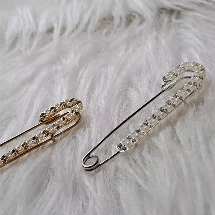 سنجاق یا گلسینه لباس قلزی نگین دار و مرواریدی