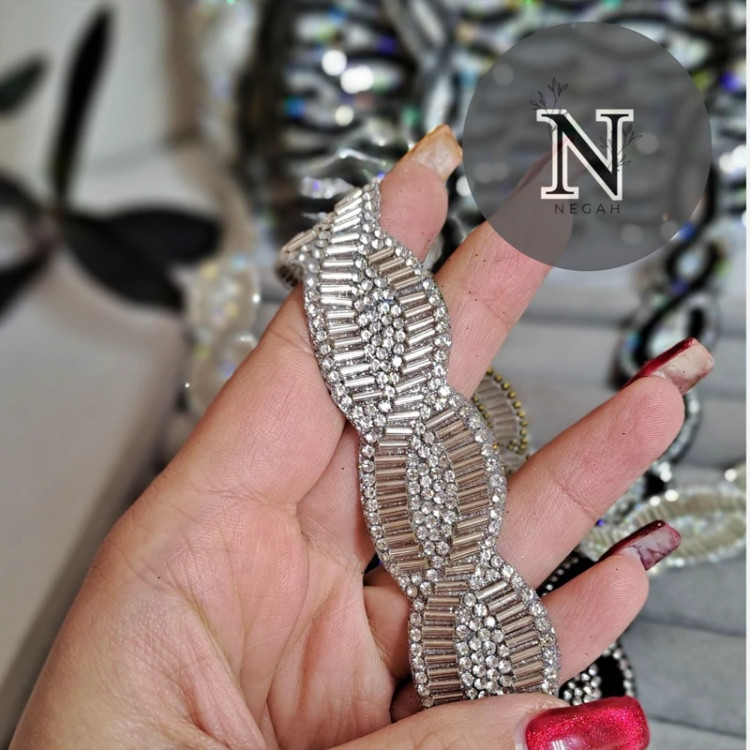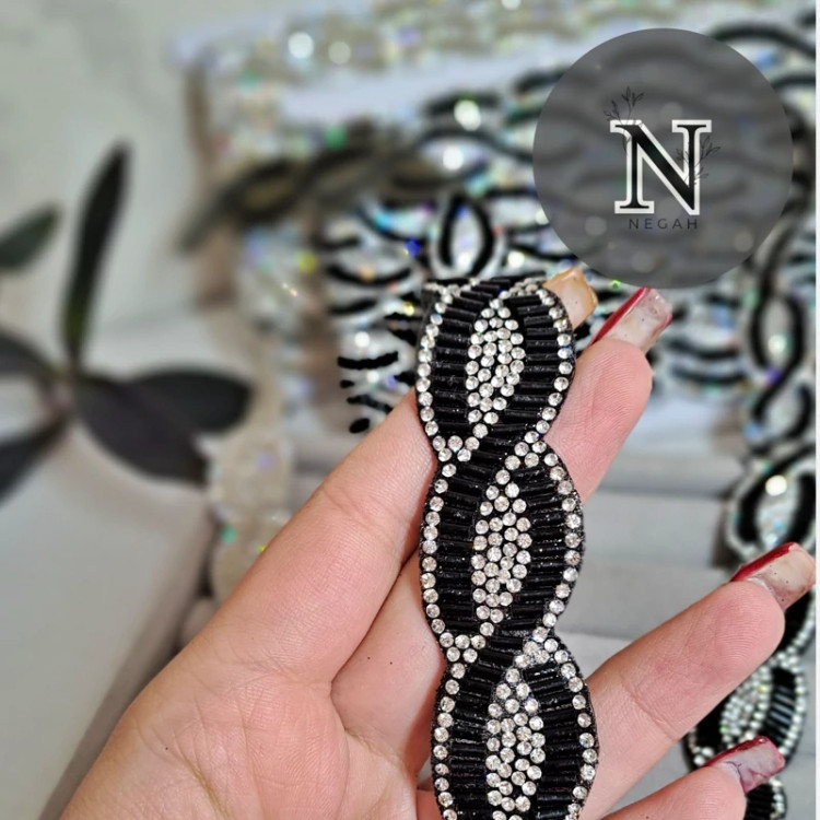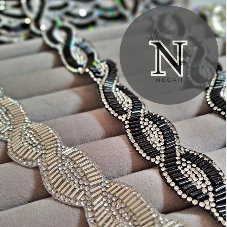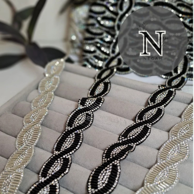 یراق مجلسی عرض 3 سانت در دو رنگ مشکی - نقره ایی یراق تماما کارشدس و مناسب انواع لباس های مجلسی - کت - مانتو و.... پشت کار تماما چسبه و با اتو به راحتی میچسبه بدون نیاز به دوخته نکته هنگام چسبوندن اتو روی درجه بالا باشه و بدون بخار و هر تیکه یراق باید یک دقیقه اتو بشه تا کامل بچسبه قیمت هر متر 320 هزار تومن
