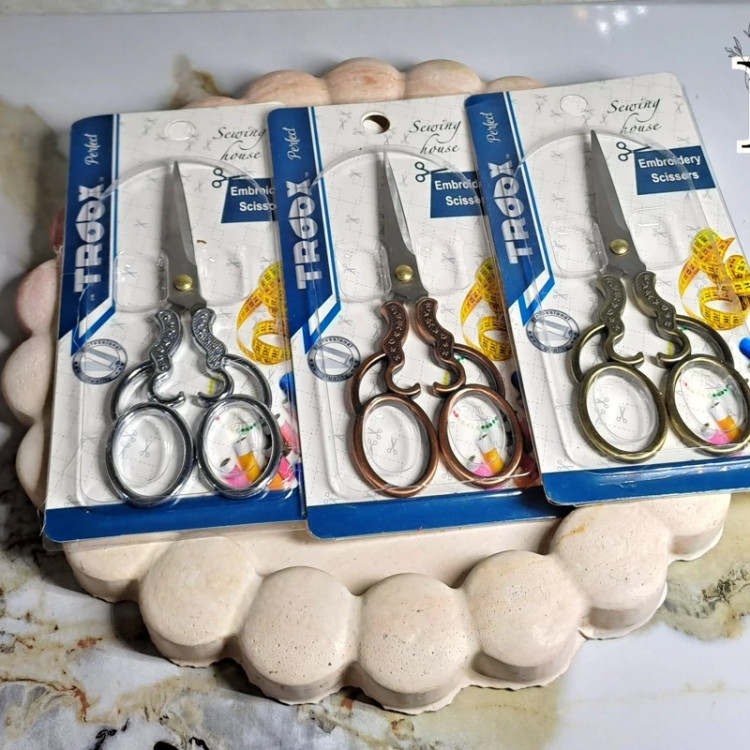 قیچی سایز کوچک کاملا تیز نسبت به سایزش خیلی تیزه در سه رنگ نقره ایی - سبز سیاه قلم - قهوه ایی سیاه قلم مناسب کسایی که کارای ظریف انجام میدن مثل گلدوزی- جواهر دوزی و .... قیمت هر عدد 280 هزار تومن