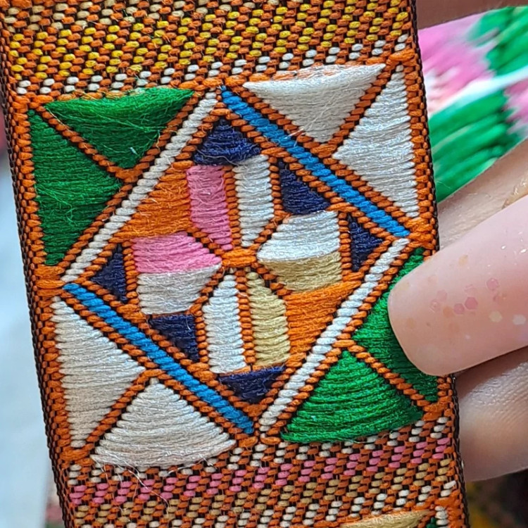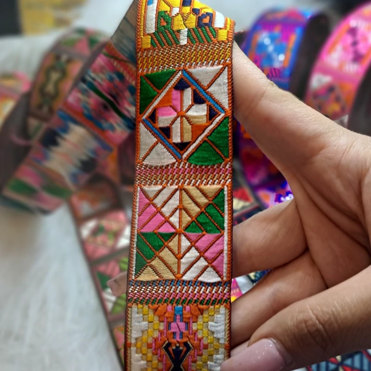 دیدن محصولات مرتبطیراق سنتی گلدوزی شده در رنگ های مختلف با دقت نگاه کنید برای انتخاب رنگ عرض 3 سانت مناسب تزیین انواع کفتان -کت -مانتو- صندل -کیف و...... فروش بصورت متری و قیمت هر متر 90 هزار تومن