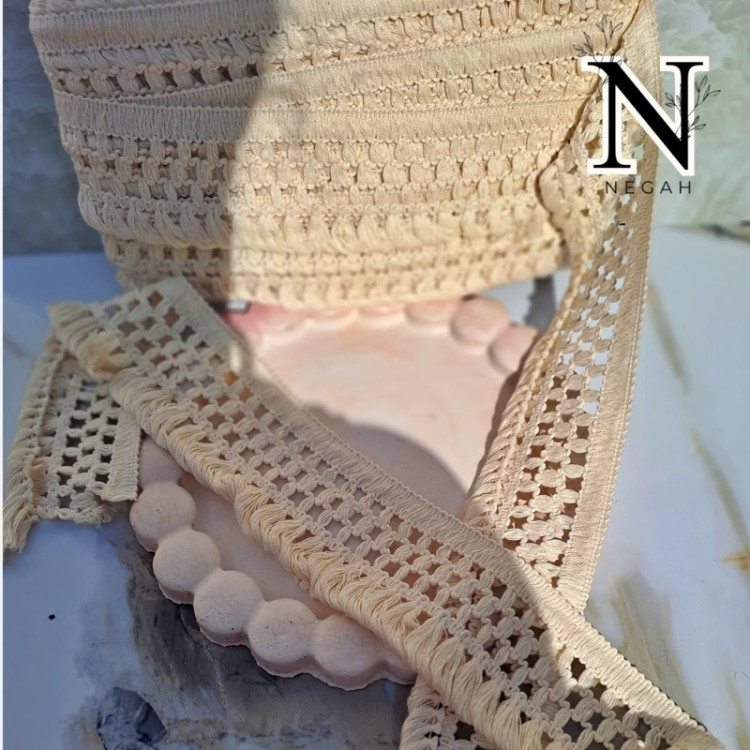یراق لبه ریشه دار عرض 13 سانت رنگ فقط کرم کار سبکه مناسب انواع پارچه های تابستونی برای لبه استین - دور کمر - پایین مانتو و لباس - لبه شلوار و حتی روی صندل استفاده میشه قیمت هر یک متر 87هزار تومن