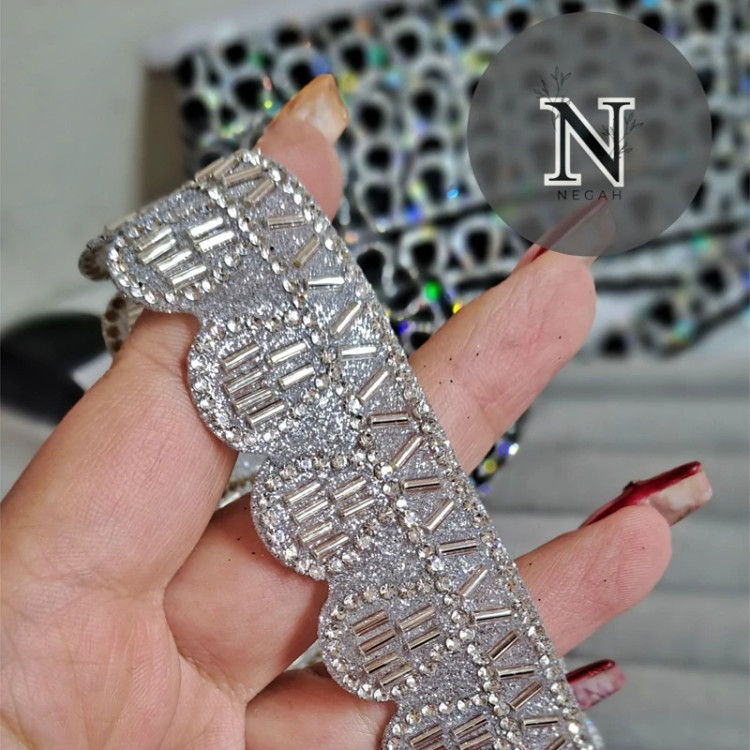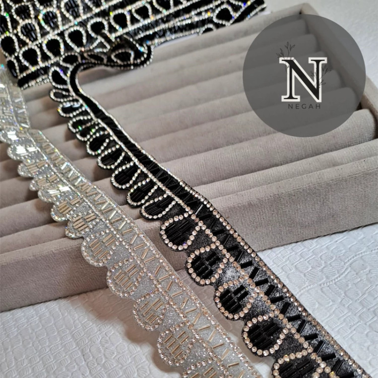 دیدن محصولات مرتبطیراق مجلسی در دو رنگ مشکی و نقره ایی عرض 3 سانت روی کار همه کار شدس و براقه و زیر کار همه چسبه که با اتو به راحتی روی پارچه میچسبه بدون نیاز به دوخت نکته هنگام چسباندن اتو روی درجه بالا باشه و بدون بخار هر قسمت یراق باید یک دقیقه اتو بشه تا کامل بچسبه قیمت متری 300 هزار تومن