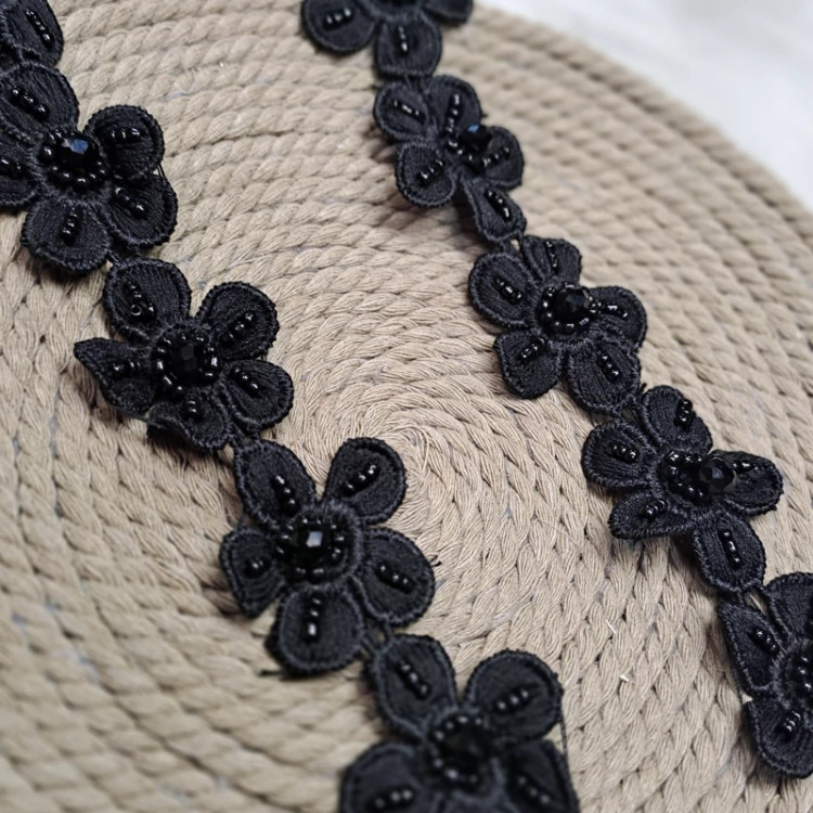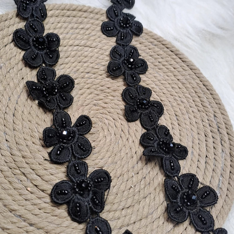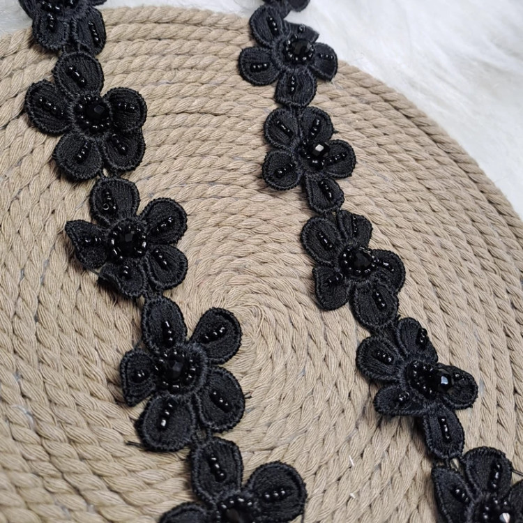 دیدن محصولات مرتبطیراق گل متری با متریال منجوق و مروارید عرض 4 سانت رنگ مشکی مناسب تزئین لباس ،چادر ،عبا ،رو میزی و... هر یک متر 150 تومن