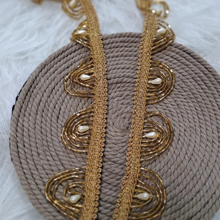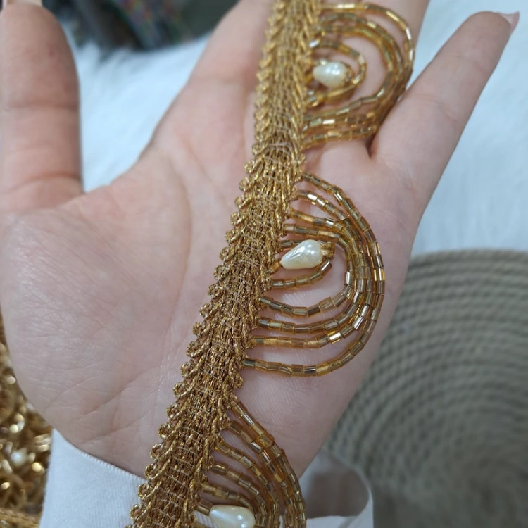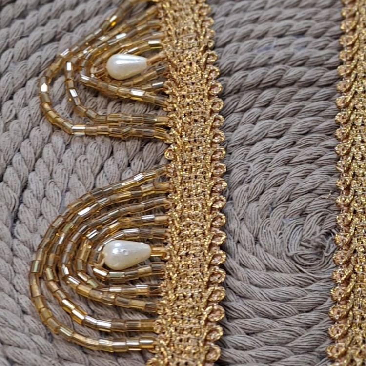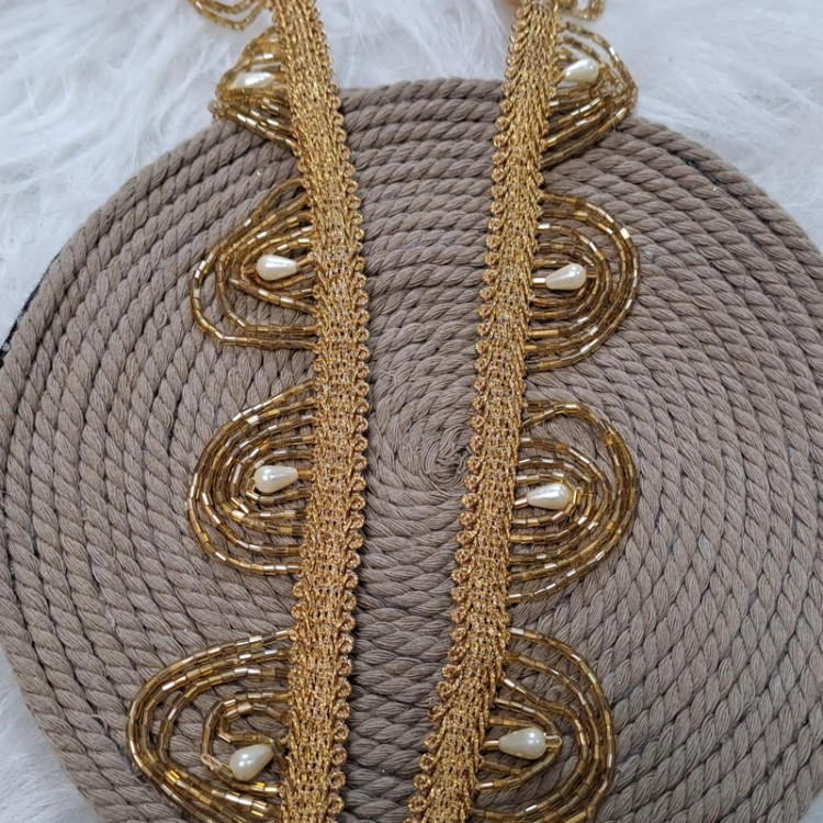 یراق طلایی اویزدار طرح نیم دایره با تزیین ملیله شکسته و مروارید اشکی مناسب تزیین لب شال و روسری -مانتو -پیراهن -کت-لباس -صندل