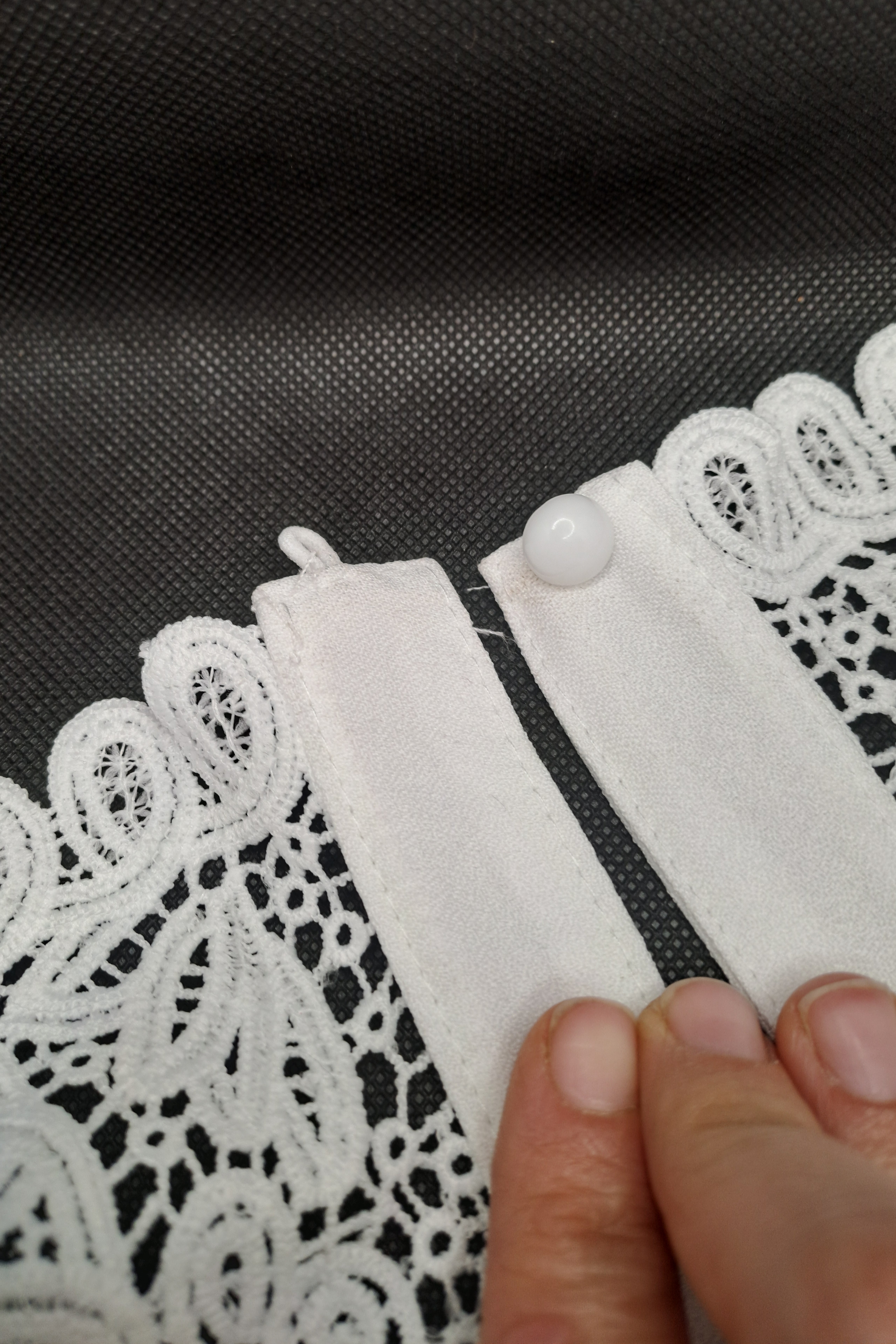 یقه ب ب رنگ فقط سفید در دو طرح این یقه هم میتونید به لباس بدوزید هم میتونید بصورت اماده با هر لباسی بپوشید چون پشت یقه دکمه داره و به راحتی روی هر لباسی میشه
